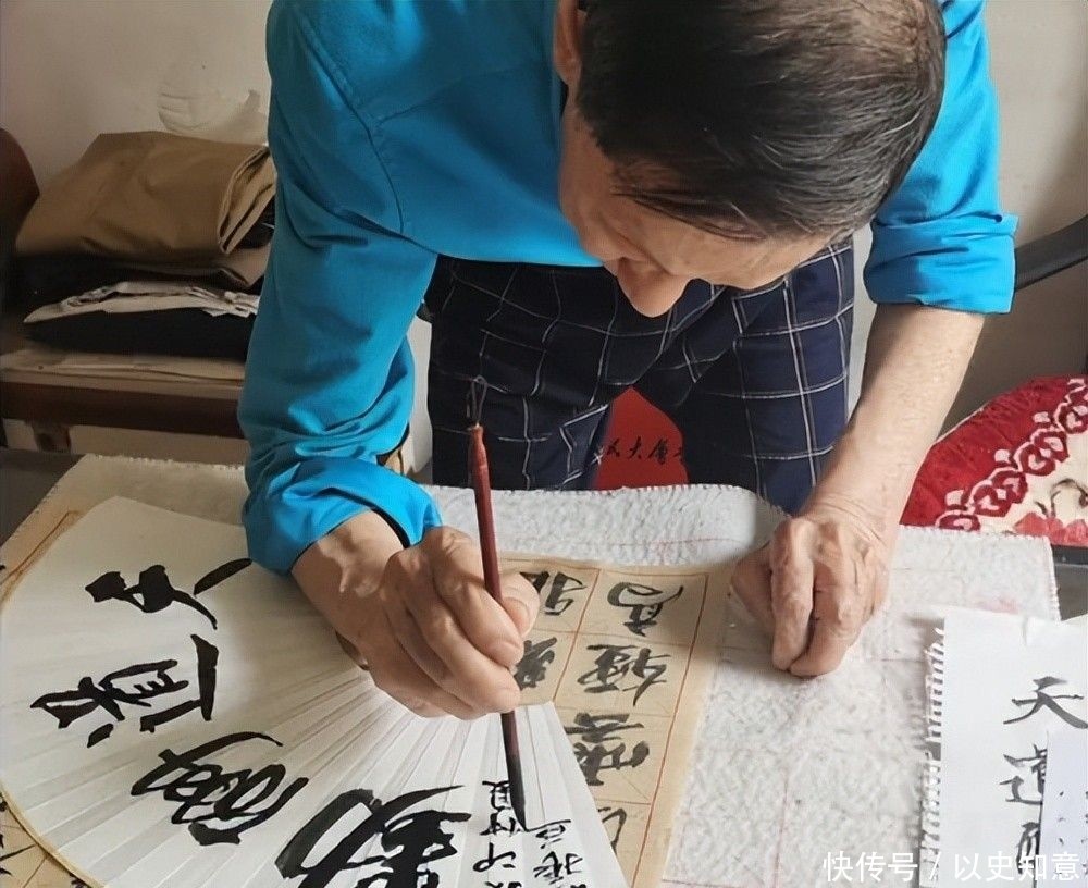 只见他执笔稳健,字迹刚劲有力,谈笑风生之间毫无老态,状态一如往常。