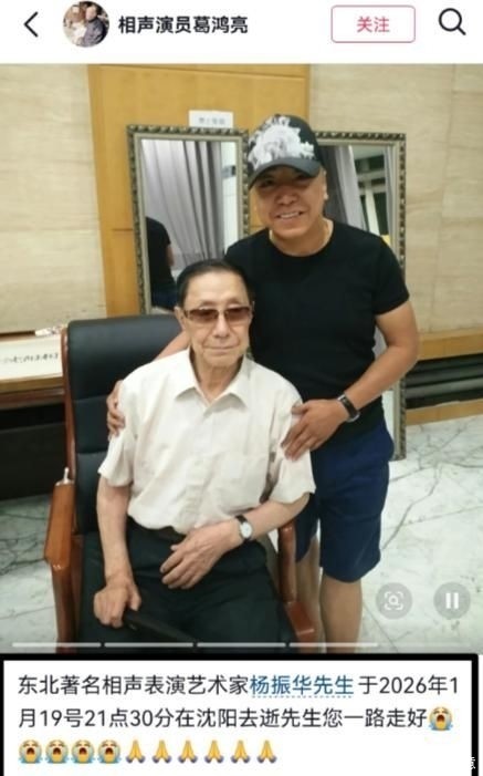 深夜时分,知名相声演员葛洪亮通过社交平台发布消息,证实杨振华先生已于1月19日晚在沈阳离世。